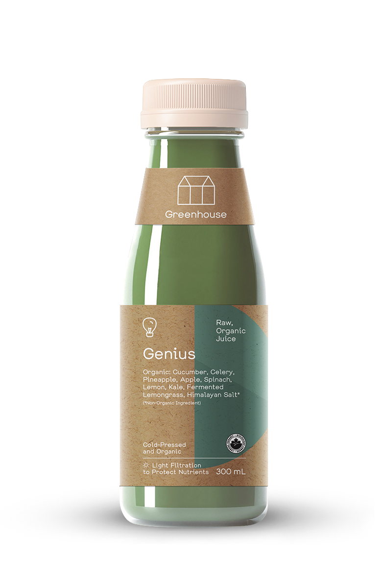 Cucumber, Pineapple, Apple, Celery, Spinach, Kale, Lemon (All Organic + Cold-Pressed), Organic Fermented Lemongrass, Himalayan Salt